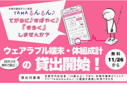 多摩市、ウェアラブル端末と体組成計の無料貸出をスタート! 健幸ポイント「TAMAるんるん♪」と連携