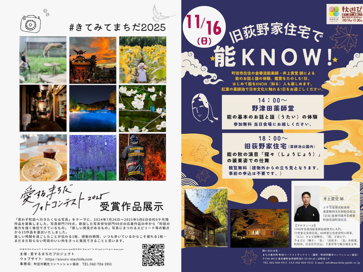 このほか、フォトコンテストの入賞作品展や、町田市在住の能楽師・井上貴覚師による体験型イベント「旧荻野家住宅で能Know!」、さらにミニ電車乗車や駅長体験が楽しめる「まちだの秋まつり」など、多彩なイベントが目白押しです。