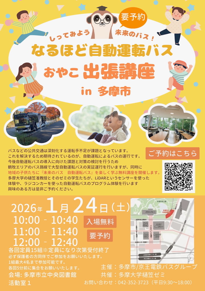 「なるほど自動運転バス おやこ出張講座 in 多摩市」が1/24(土)開催
