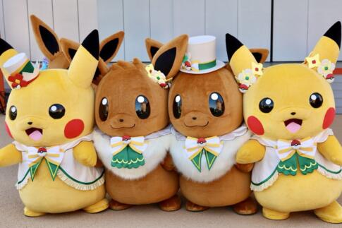 カヤツリタウンの出口「カヤツリタウンエグジット」前には「ゲッコウガ」と「ドーブル」がゲストを見送ります。カヤツリタウン内にはまだまだ紹介しきれないほどたくさんのポケモンたちが隠れていますので、何度歩いても新しい発見がありそうです。