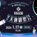 ジャイアンツタウンスタジアム「Gタウン・冬の天体観察会」1/17(土)開催! 稲城市のジャイアンツタウンスタジアムで、冬の星空を楽しめるイベント「Gタウン・冬の天体観察会」が、2026年1月17日(土)に開催されます。 野球場の外野が“星空観察スポット”に 会場となるのは、ジャイアンツタウンスタジアムの外野フィールド...